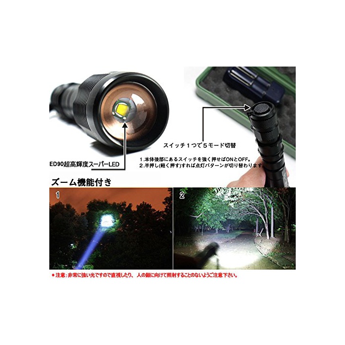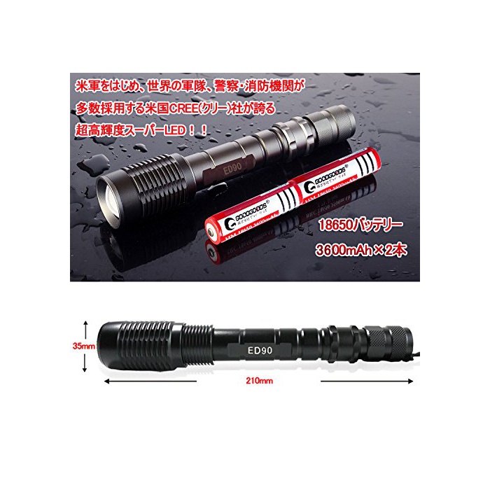 원본상품명: GOODGOODS LED?中電? CREE XM-L T6 ?力 軍用 防水 フラッシュライト 1800LM 5モ?ド ズ?ム機能付 【一年保?】 ED90