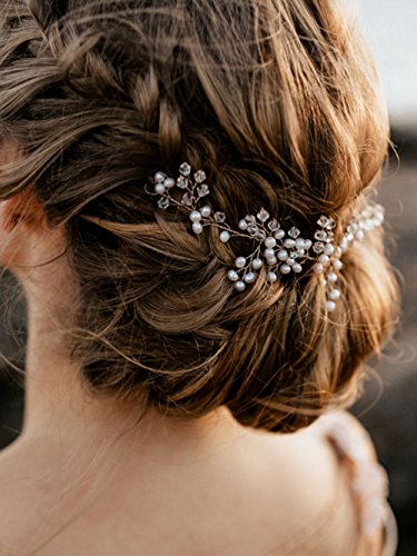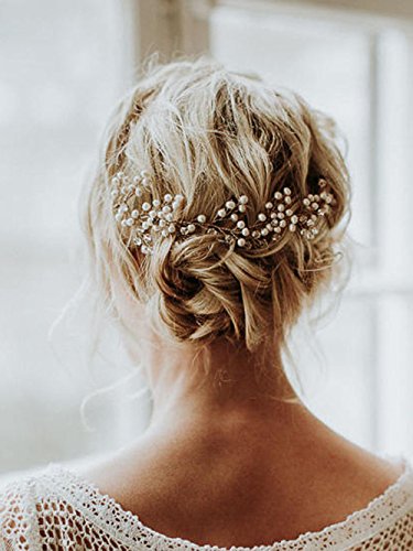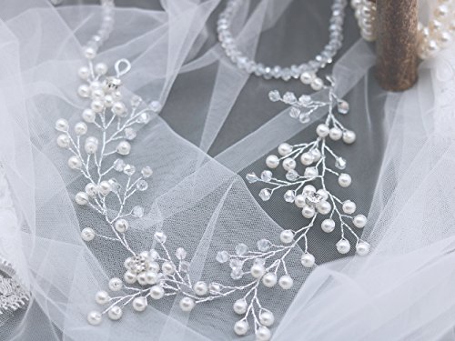 FXmimior Bridal Wedding Headpiece Hair Vine Crystals Rhinestone Headband Tiara Wedding Party Evening Hair Accessory (Silver)