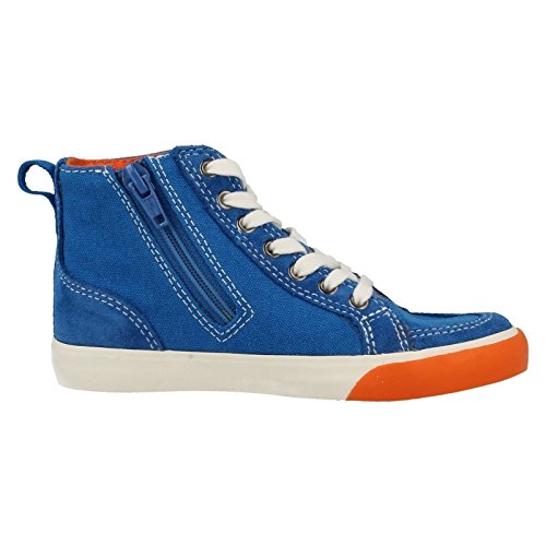 The Clarks Club Pop Toddler shoes have a sleek and comfortable fit. These canvas style boots are suitable for daily wear. Textile is used in making the upper as well as the lining of this shoe. The insoles of these shoes are made from mixed material, making them flexible and lightweight. These shoes feature laces to give a fastening closure along with a functional zip on the inside that adds to the comfort.Feature