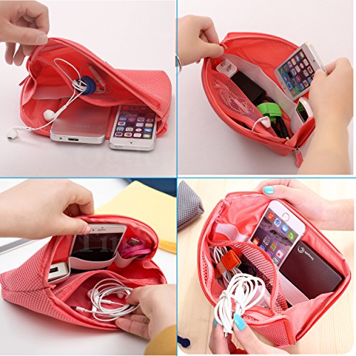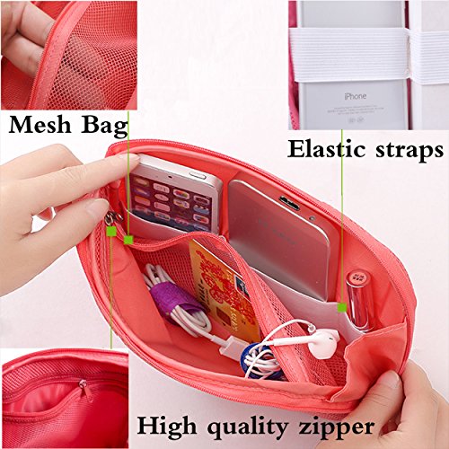 Multifunctional Digital Storage Bag Pouch / Shockproof Makeup Data Cable Travel Case Accessories Packing Organiser (Large(14x20.5cm), Pink)