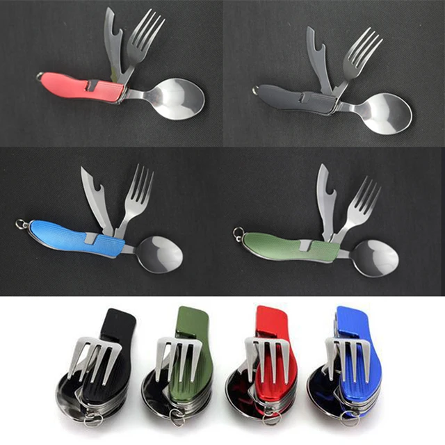 | [해외] 접이식 휴대용 스테인레스 스틸 캠핑 피크닉 수저 나이프 포크 숟가락 양식기 식기 여행 키트 |