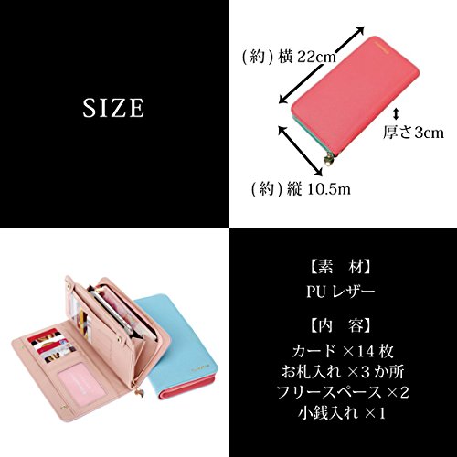 -. Feature : 【ハートのチャームがキュート♪】人気のラウンドファスナー式長財布。POPなバイカラーがオシャレな8collar展開。 / 【仕様】カードポケット×14、お札入れ×3、フリースペース×2、ファスナー式小銭入れ×1。ファスナーが大きく開くのでカードやお金の出し入れがスムーズ。大容量のカードポケットにレシートや領収書はもちろんのこと、スマホや通帳、パスポートまで収納可能なデザイン性と機能性を兼ね備えた逸品です。 / 【素材】PUレザー(防水加工済み) / 【サイズ】(約) 横 22cm x 縦 10.5cm x 厚さ 3cm / 【保証】メーカー保証書付属(45日間) ※商品の不良や故障等ございました折はメールにてご連絡を下さいませ。迅速にご返金、もしくは新品を再発送させて頂きます。