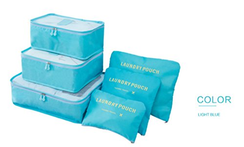 6pc Waterproof Travel Luggage Organizer Storage bag Durable Packing Compression Pouches 3 Travel Cubes + 3 Pouches (Sky Blue)