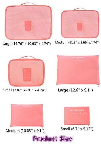 - Set includes: 3 Travel Packing Cubes + 3 Compression Pouches . Ideal for active lifestyles including traveling, backpacking, camping, gym, beach, or yoga, it's also can separating clean, dirty clothes, wet towel, washing tools, cosmetics; Storing your shoes with one dedicated bag; Protecting your clothes from wrinkle, dust and damage.