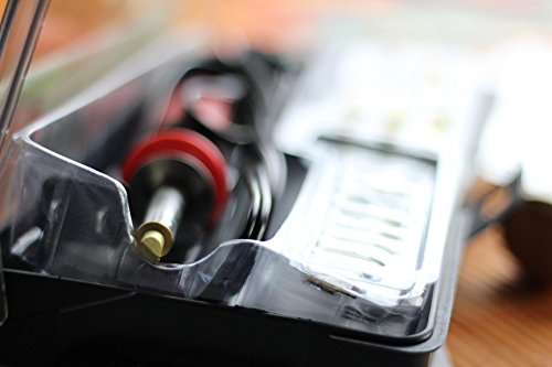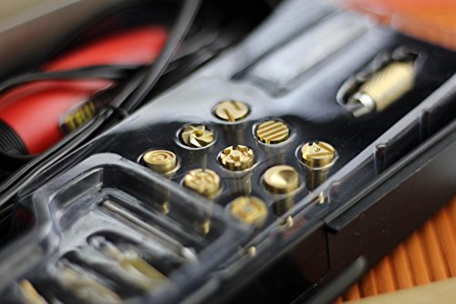 - EASE OF USE - The tips can be very easily interchanged once they have cooled and the switch on the handle can be used to either turn off the power, or to switch between 15W and 30W power levels. Unlike other kits which use plastic stencils, this kit comes with a superior quality metallic pyrography alphabet stencil to make your work even more easy, impactful and professional. It also comes with a metal stand to help you support the pen during the work.
