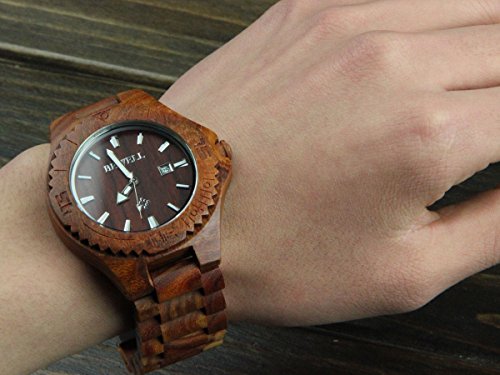 YF-WOOD YFWOOD 화제성이 어느(있는) 목제 손목시계 자연을 느끼는 나무의 온기를 살린 맨즈 손목시계 캘린더 부착 신사용의 우드 시계 남성용 유니섹스