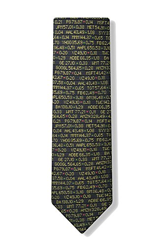 Binding : Apparel Product Description Show your love for the thrill of finance with the Stock Ticker Tie from Wild Ties. This graphic tie mirrors an actual stock ticker with yellow lettering and green and red arrows to reflect the ebbs and the flows of the stock exchange, all on a black background. Never take your eye off the prize with this unique occupational tie. Color: Black Dimensions: 3.25' x 58.0' Material: 100% Microfiber 0
