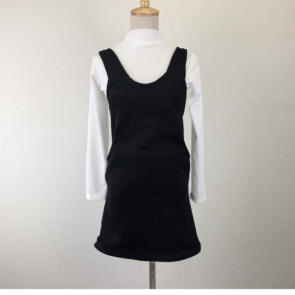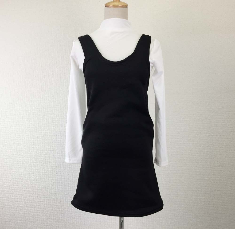 プチタートルネック長袖トップスとミニ丈ジャンパースカートの2点セット