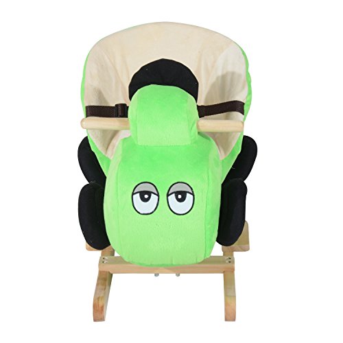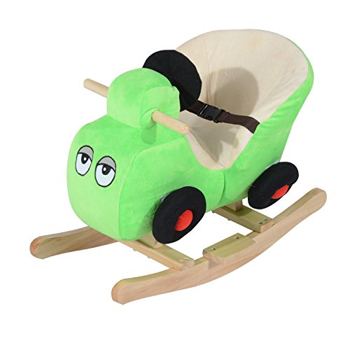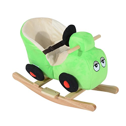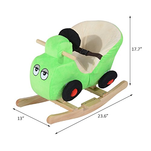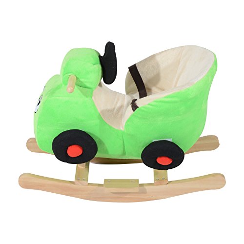 Features: - Plays a wide selection of 32 different nursery rhymes so that you never get tired of hearing the same song - Plush and wood combination makes it a soft yet sturdy choice for young children - Easy grip handles and footrests ensure a safe and secure ride - Soft plush seat has a safety belt for added comfort and support - Fun car shape and bright colors make it a highly appealing choice for young children - Enjoyable rocking motion will hold a child's attention offering maximum staying power in a toy