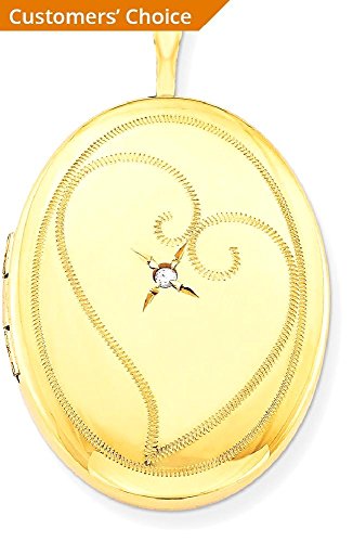 ICECARATS DESIGNER JEWELRY 1/20 GOLD FILLED 26MM DIAMOND IN HEART OVAL PHOTO PENDANT CHARM LOCKET CHAIN NECKLACE THAT HOLDS PICTURES