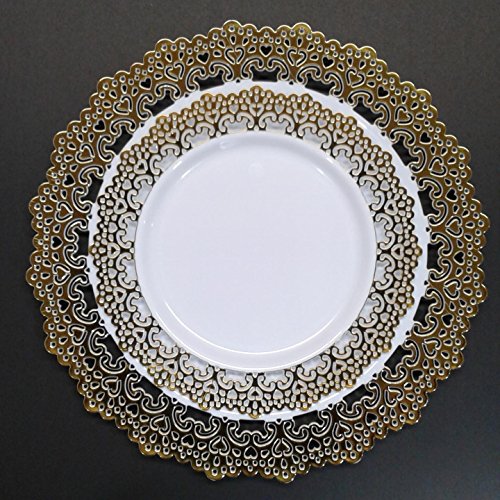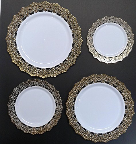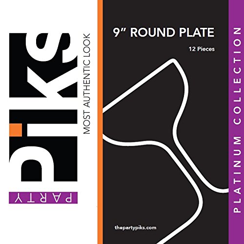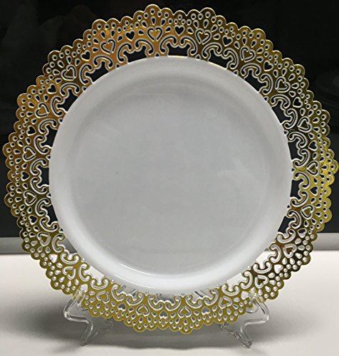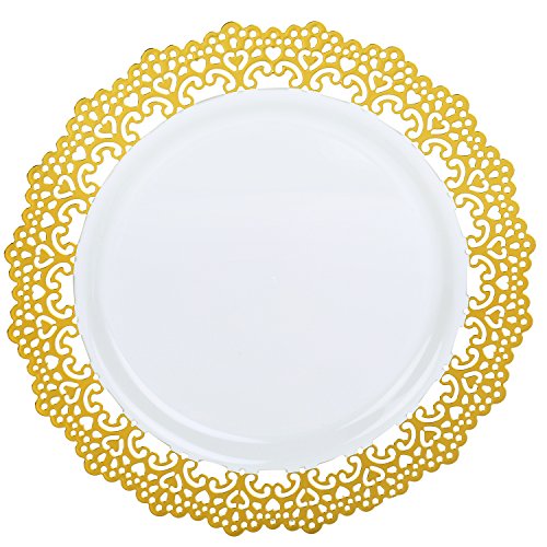 Premium Decorative Plastic Dinnerware Plates - 9" Inch Round Dinner Plate - 12 Count - Gold Rimmed …