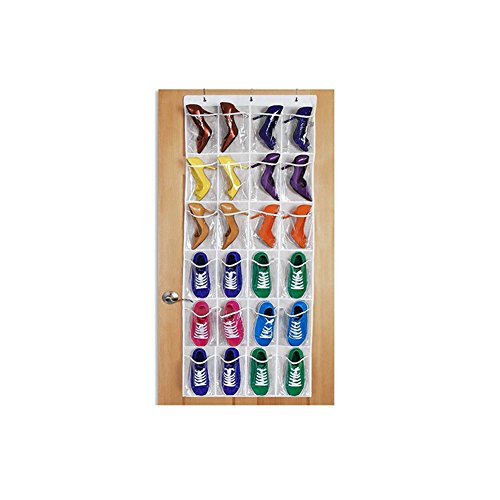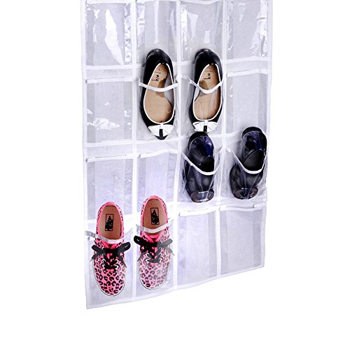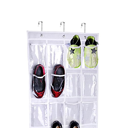 -. Title : 24 Grid Over Door Shoe Storage Bags Organizer ShineMe Non-woven Fabrics Clear Pockets with 3 Hooks Hanging for Kitchen Home Bedroom Postcards Storage Rack Closet Clothes Pouch