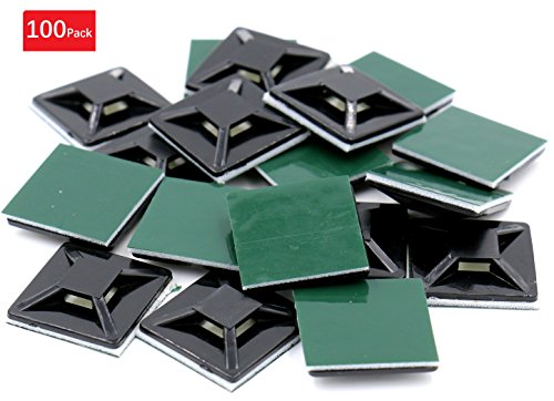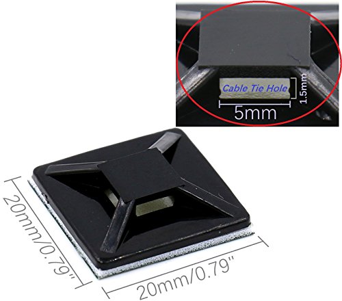 iExcell 100Pcs Black 20mm x 20mm x 4mm Adhesive Cable Tie Mount Base Holders