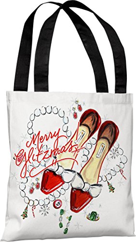 One Bella Casa Ruby Shoe Glitzmas Tote Bag by Timree Gold, 18"x 18", White/Multi