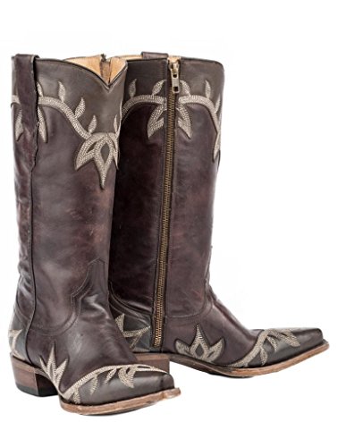 Studio : Stetson Publisher : Stetson Binding : Apparel Product Description Womens Stetson Western Boots: Ladies Stetson Cowboy Boots. Ladies, you are going to love the style of these Darcy Stetson boots. These boots have a brown vamp and 13" shaft a chocolate wing tip crown and heel with a unique pita embroidery on the vamp and shaft and they are burnished and washed. These pull on boots have a snip toe and a stacked heel. They are constructed with a single welt, a leather sole and leather insole. For comfort they have cushioned leather insole. 12-021-6105-1260 BR 0