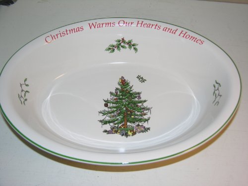 -. Title : Spode Christmas Tree Oval Round Vegetable Serving Dish with Sentiment