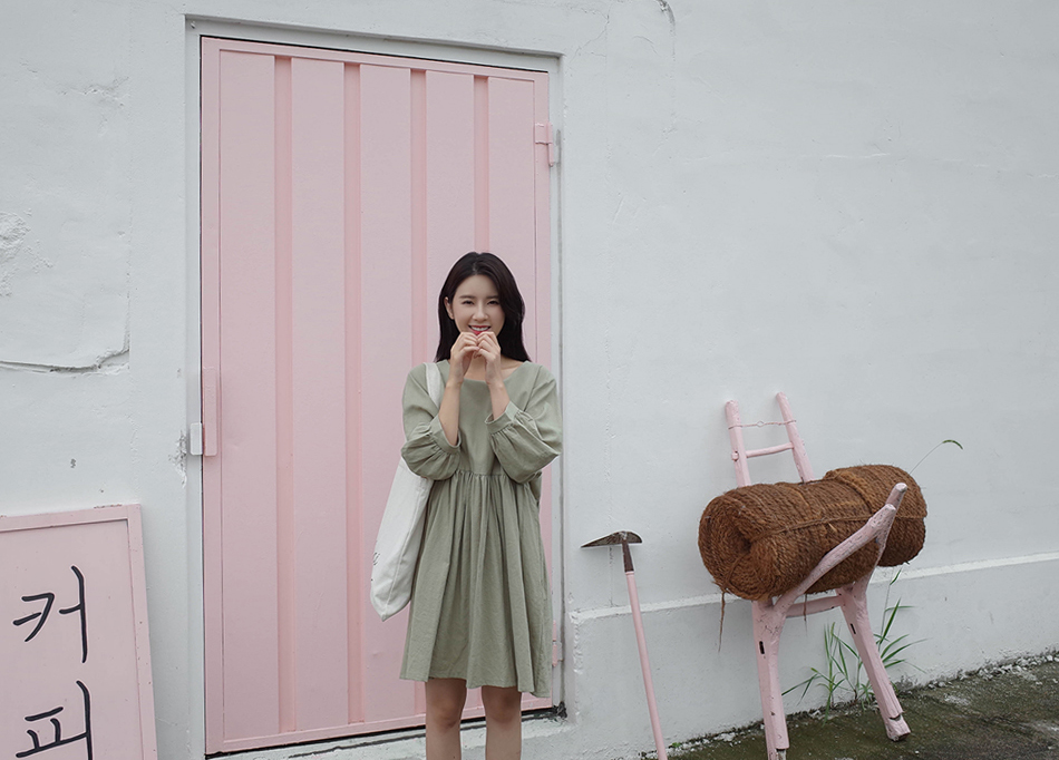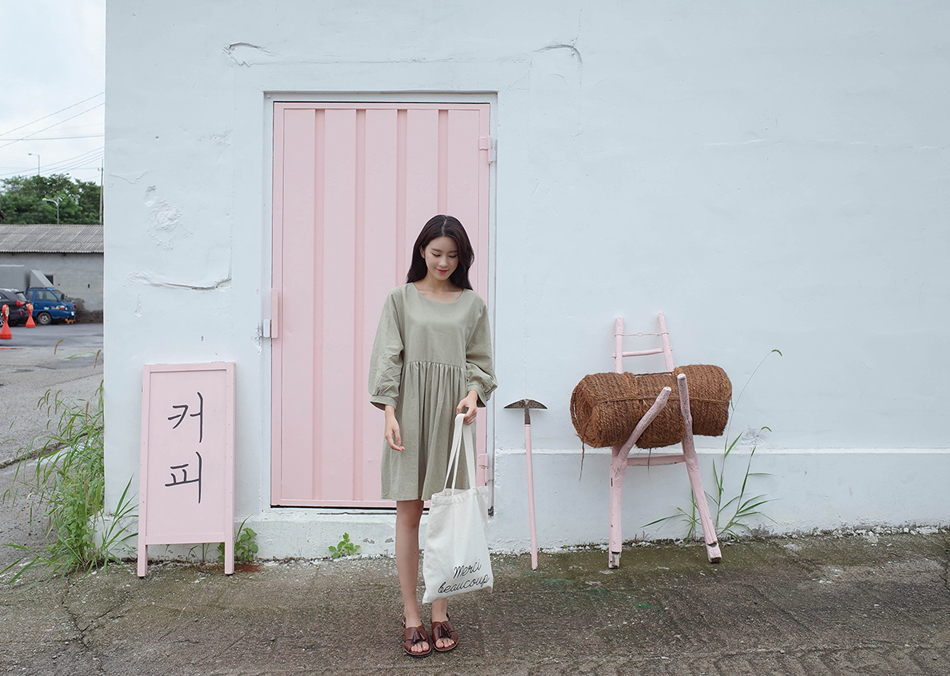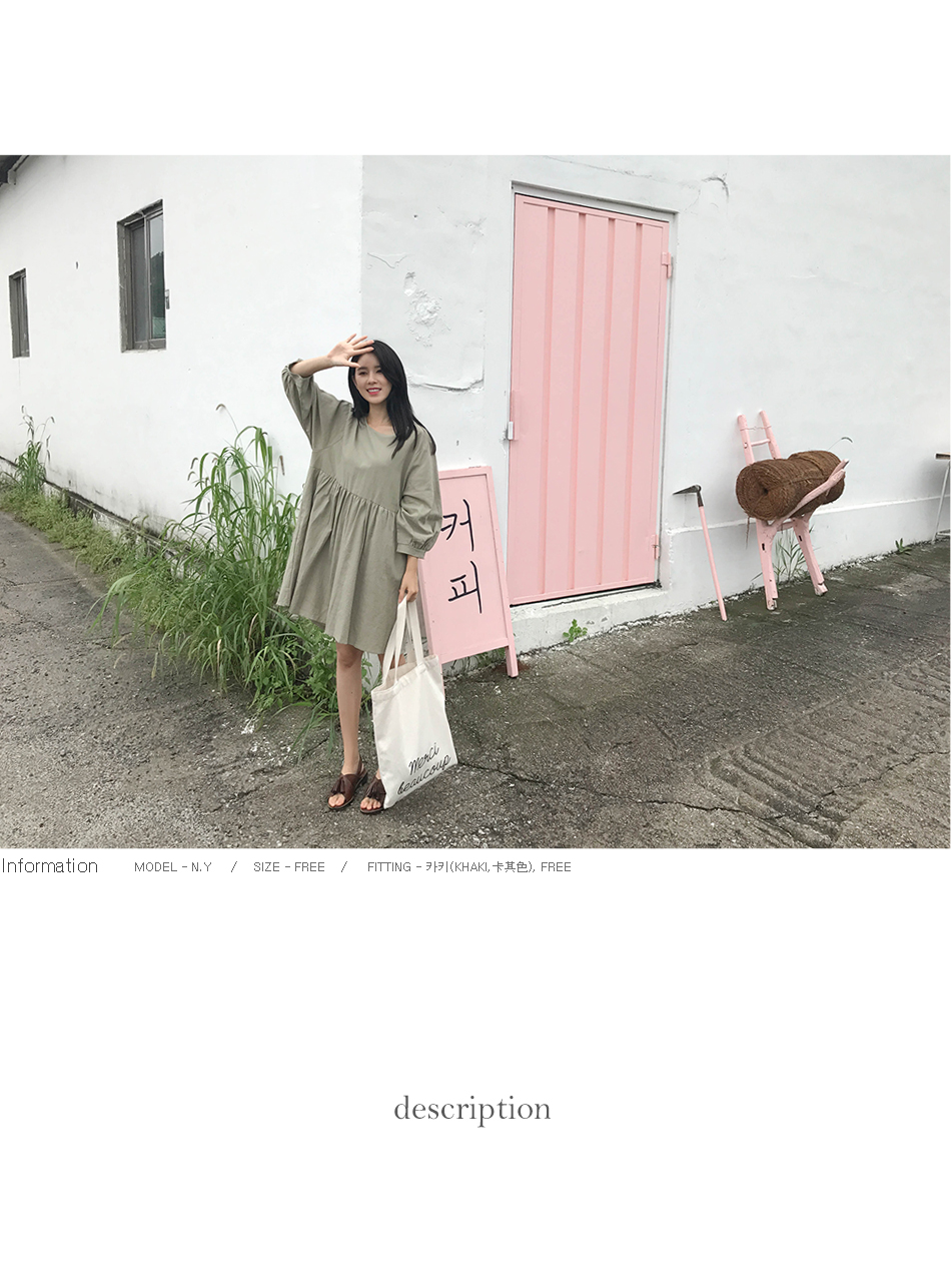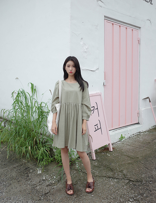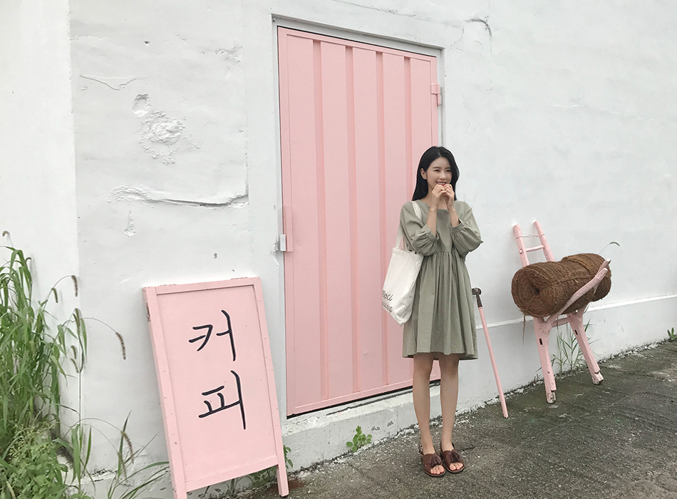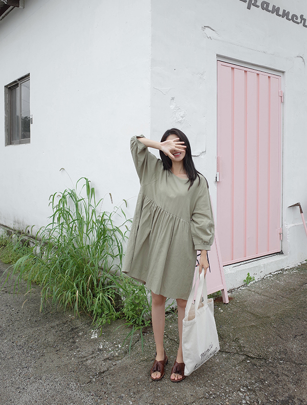 파스텔톤의 카키컬러가 매력적인 원피스예요:)