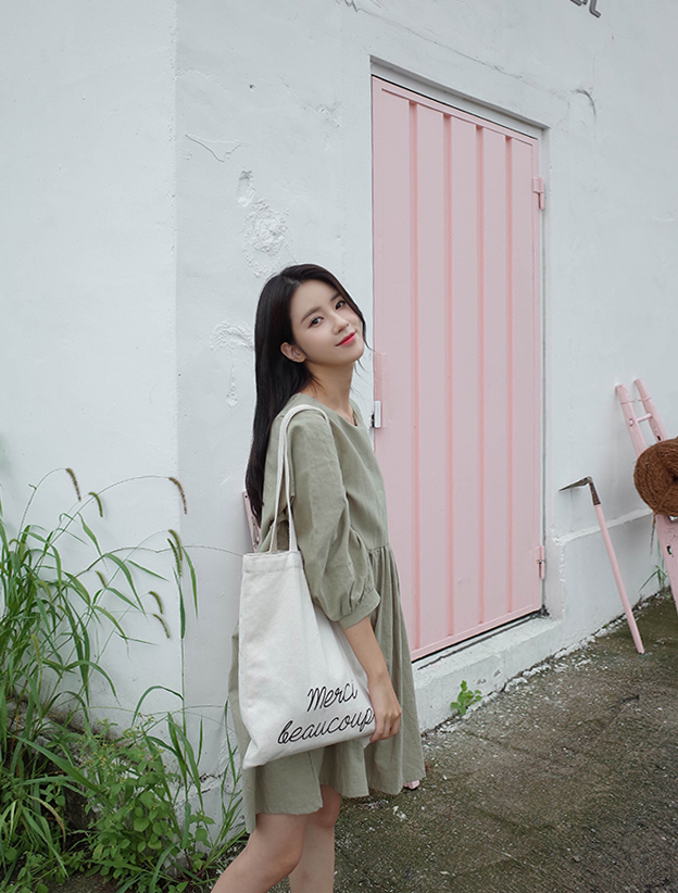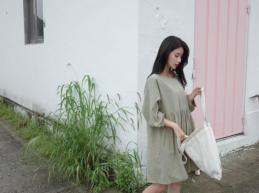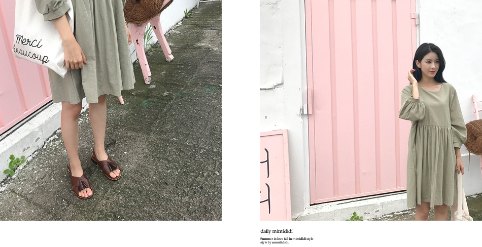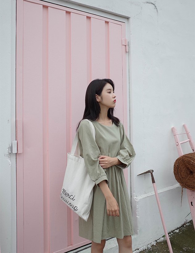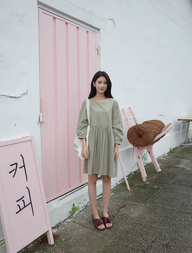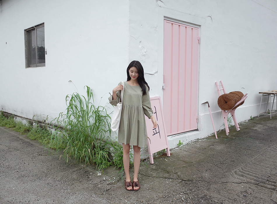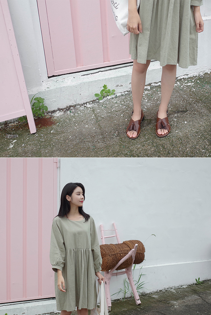 파스텔톤의 카키컬러가 매력적인 원피스예요:)