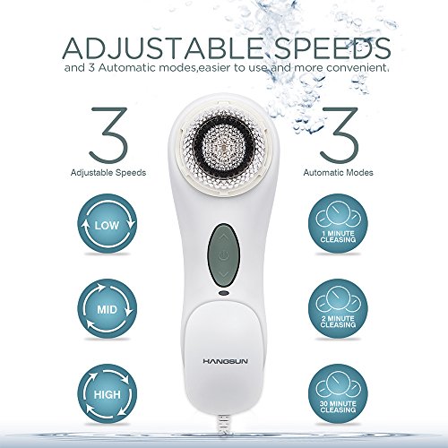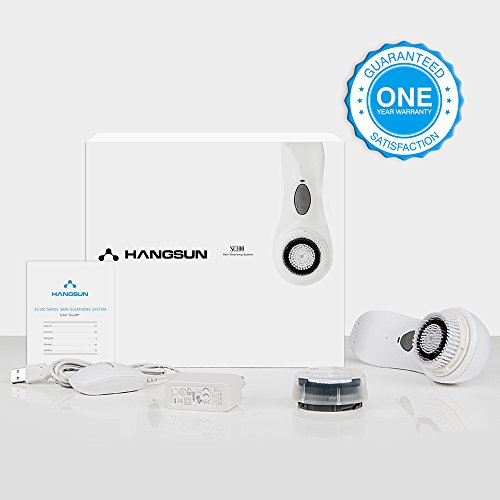 -. Feature : 【Advanced Cleansing】This is the essential first step in a healthy skincare routine. The Hangsun SC100 Sonic Cleansing Brush uses a sonic frequency of more than 300 oscillations per second to deeply cleanse skin far more effectively, yet more gently, than traditional, superficial cleansing or simple rotating brushes. It allows 7x better cleansing than hand washing alone. Your skin will be smoother, softer and more radiant. / 【Effective】The Hangsun SC100 Sonic Cleansing Brush is 7x more effective at removing makeup than hands alone. Skincare products such as skin creams, serum, cleanser and moisturizers will absorb better. It's great for all skin types and many skin conditions, from dry, aging skin to oily skin. It helps remove impurities and acne, clears pores and exfoliates tough skin. / 【Two Brush Heads Included】Comes with 2 smart brush heads, normal brush head: for face and body use (effective for exfoliating and deep cleansing) and sensitive brush head: can be used on sensitive and delicate skin. It can improve acne and clear pores, meeting your different skincare needs. The brushes are safe and gentle, won't hurt your skin and are suitable for all skin types including sensitive skin. / 【3 Working Modes & Speed Levels】The Hangsun SC100 Sonic Cleansing system uses 3 automatic modes (1 minute cleansing, 2 minutes cleansing and 30 minutes cleansing) and 3 adjustable speeds (LOW speed is gentle, suitable for compromised or fragile skin, even very sensitive skin conditions; MID speed is developed for normal daily use, suitable for all skin types; HIGH speed is developed for deep cleansing, suitable for a comfortable and more intensive cleansing.) / 【IPX7 Waterproof】The Hangsun SC100 Sonic Cleansing Brush is waterproof, you can use it freely while taking a shower. And it is rechargeable and portable, with a wireless charging holder, so you can use it safely and conveniently