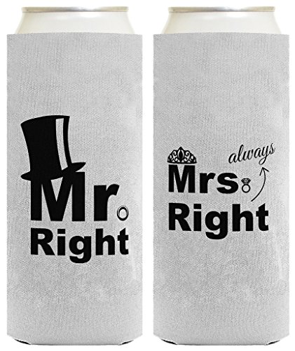 Wedding Bridal Gift Mr Mrs Always Right 2 Pack Ultra Slim Can Coolie Drink Coolers Coolies Multi