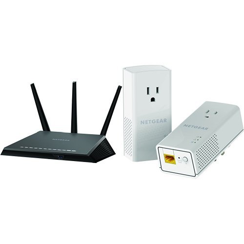 NETGEAR Nighthawk AC1900 Dual Band Wi-Fi Gigabit Router (R7000) and NETGEAR Powerline 1200 + Extra Outlet (PLP1200-100PAS)