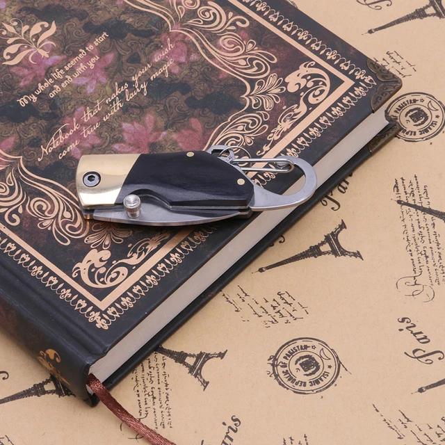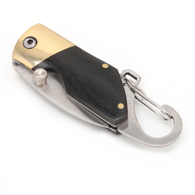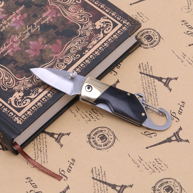 [해외] 미니 흑단 핸들 접는 나이프 야외 캠핑 생존 키 체인 포켓 1 개