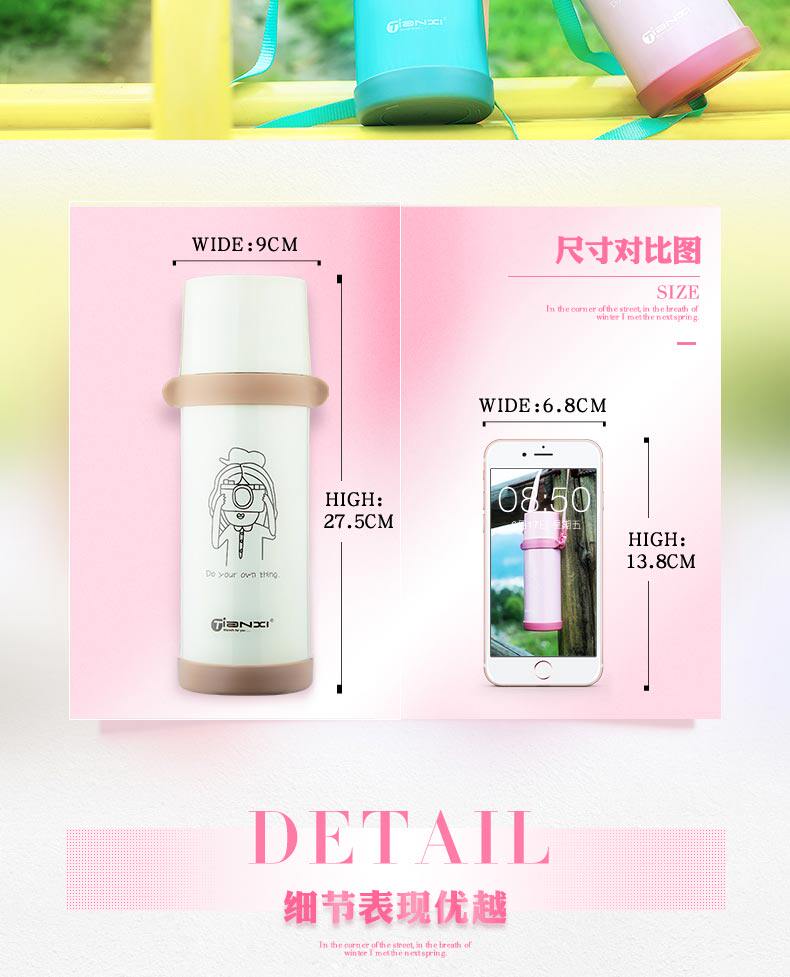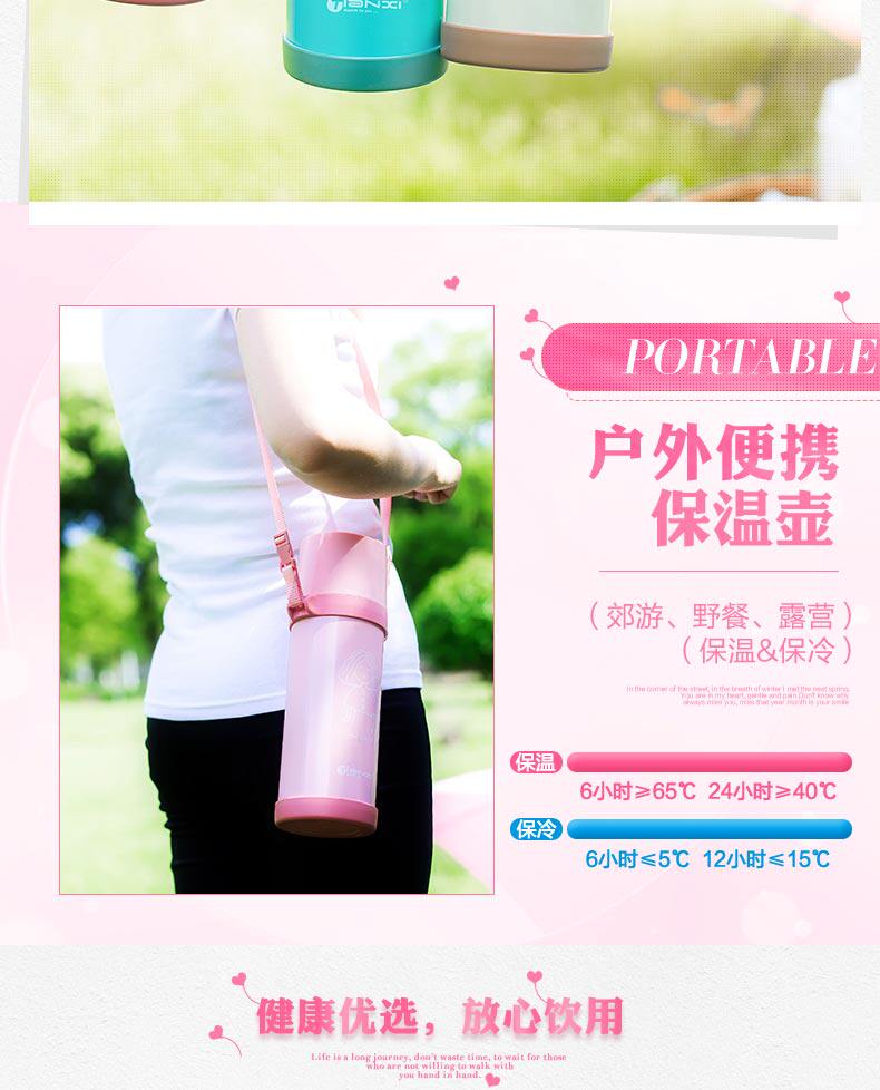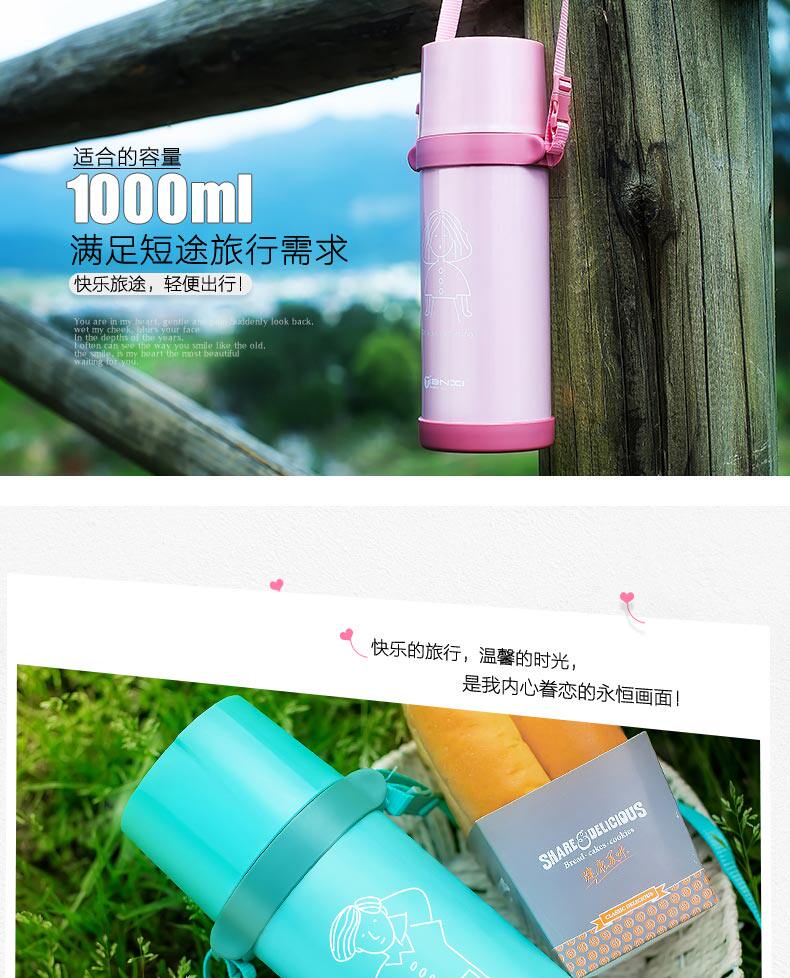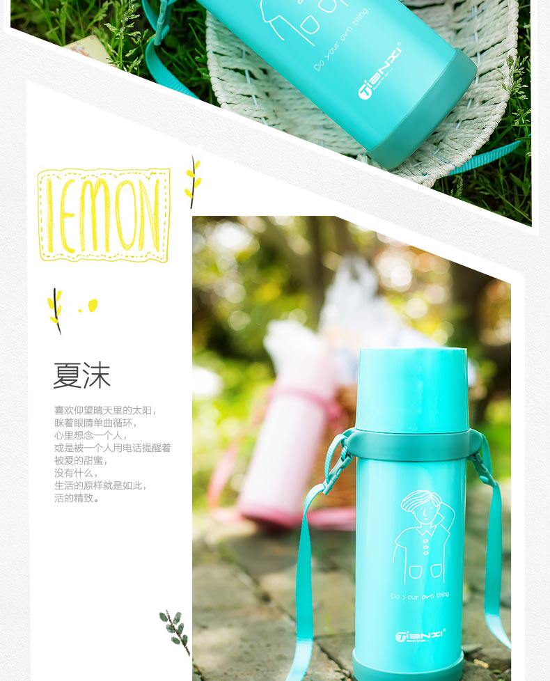 大容量保温杯便携提绳不锈钢水壶学生韩国旅行杯子户外保温壶