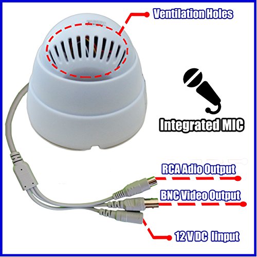 -. Feature : 1/3" CMOS 1000 TVL Color Sensor, high definition, delivers video a long operating life, reliable operation, and high value. / ONLY WITH INTEGRATED MICROPHONE , 3.6mm Wide angle lens / This Indoor camera can capture video in darkness mode up to 70ft away with 24 built in IR LEDs. / IN CASE YOU NEED OUTDOOR CAMERAS COPY AND PASTE ANY OF THESE TWO CODES ON AMAZON´S BROWSER B01NGU8UAM , B01J0PQE00 / Security Sticker, Mounting screw bag and Instruction manual are Included