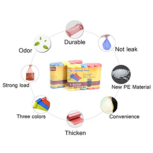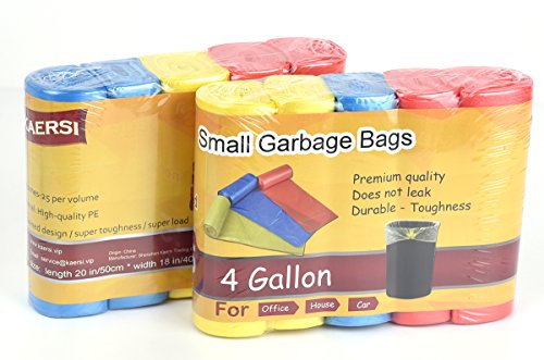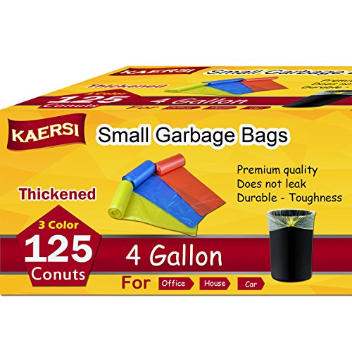 KAERSI Thicken Small Trash Bags for Office,Home Waste Bin, 4 Gallon, 125 Counts 3 Color