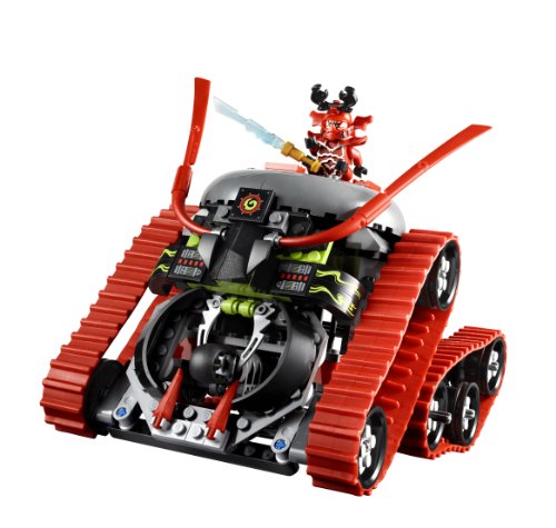 Lord Garmadon's most fearsome soldier, General Kozu has stolen the elemental ice blade and is trying to escape in the Garmatron, a tracked-tire battle machine straight from the underworld. Chase after him with Zane on the ice spider and fire the ice shooter! Dodge the Garmatron's hidden missile and get the elemental ice blade back without being locked up in the Garmatron's prison! Includes 3 minifigures with weapons: Zane, General Kozu and swordsman.Feature