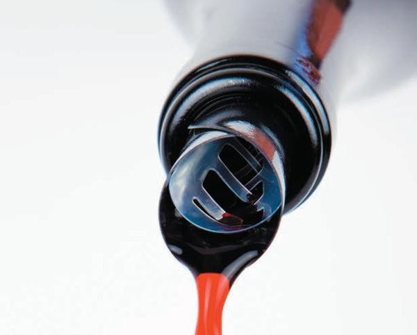 | 内側面に施した切れ込み部分を通ったワインは空気と触れ合い、香りを解き放ちながらグラスに注がれます。外側面がブラックなので、どのようなカラーのボトルでも違和感なく馴染みます。 |
