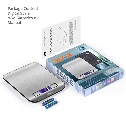Package Contents 1 X Digital Kitchen Scale 2 X AAA Batteries 1 X User Manual 0