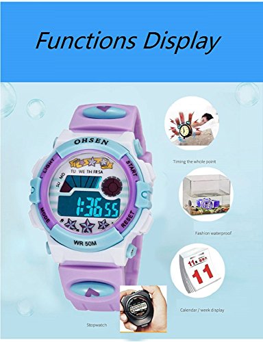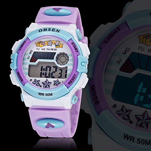 eYotto Girl's Purple Waterproof LED Digital Watches Electronic Out-door Multi-function Sports Wrist Watch
