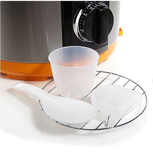 - Feature : Pressure Cooker is in Red and has a detachable AC power cord for ease of storage; 90-minute timer automatically begins once it reaches cooking pressure / Includes a removable nonstick cooking pot to make clean up a breeze; Measurements: Approx. 14-1/2"L x 13-1/8"W x 14"H / What you get: Steaming rack, lid, rice scoop, rice measuring cup and water collector / Use and care manual with recipes and cooking chart / Item comes in brown box