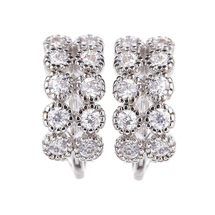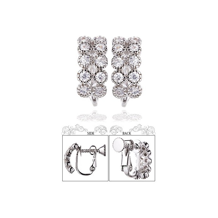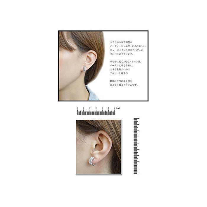 더 길이/굵음:약8.2mm/1.6mm 클래시컬인 분위기가 파티 쥬얼리에 어울리는 큐빅 지르코니아 파《베》의 나사식 귀걸이.화려함으로 ## 2열의 스톤은,파티에는 물론,대