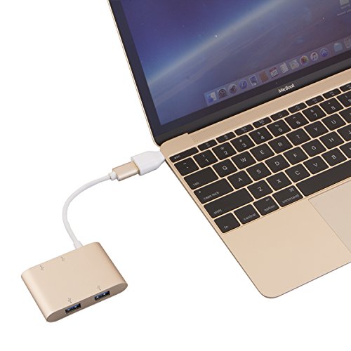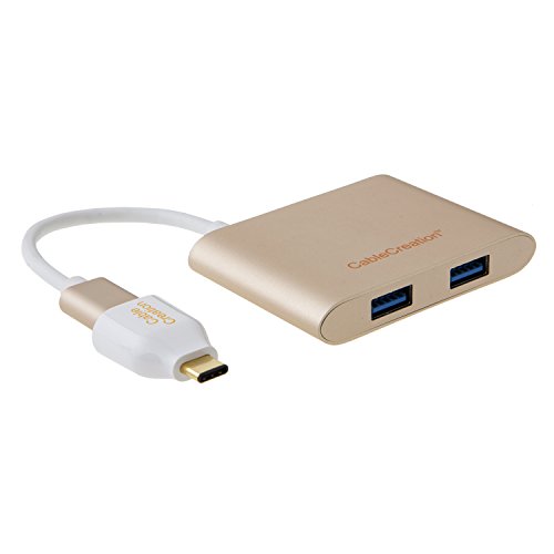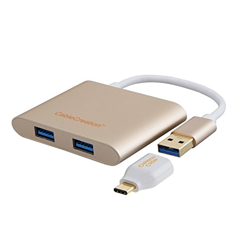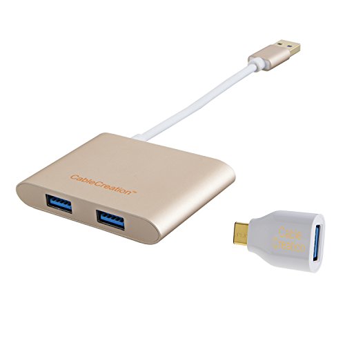 CableCreation USB Hub, 4-Port Aluminum USB 3.0 Hub + USB-C Adapter, for iMac, MacBook, Lenovo Yoga, Dell XPS or any PC has USB 2.0/3.0/USB-C port, Gold Aluminum