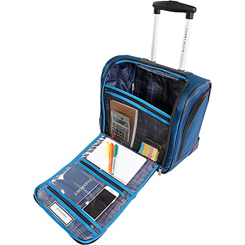 -. Binding : Apparel -. Brand : Perry Ellis -. Department : unisex-adult -. Feature : The main compartment, featuring a 2-way zipper system, opens in a U-shapped pattern to allow easily access and visibility to all items. Two side zippered pockets that run along the length of this underseat rolling tote bag feature two dividers each. Two small accessories pockets located on the front. A large accessories pocket located on the front for those larger items. / Push button aluminum trolley handle for easy travel. Cushioned top carrying handle for comfort. / The interior includes one mesh zippered pocket and two clear plastic zippered pockets to easily see what is inside. Larger interior divider helps to separate clothing from smaller accessories. / Smooth gliding in-line wheel system. / 9.5x15x16 -. Label : Perry Ellis Lage -. Manufacturer : Perry Ellis Lage -. PackageQuantity : 1 -. ProductGroup : Apparel -. ProductTypeName : BAG -. Publisher : Perry Ellis Lage -. Studio : Perry Ellis Lage -. Title : Perry Ellis Excess 9-pocket Under the Seat Carry-On Bag