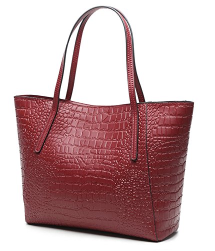 -. Title : Women's Leather Tote Bag, Crocodile Embossed Leather Handbag Shoulder Bag