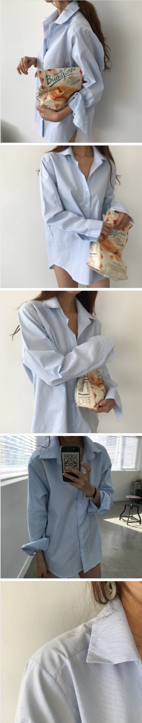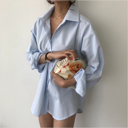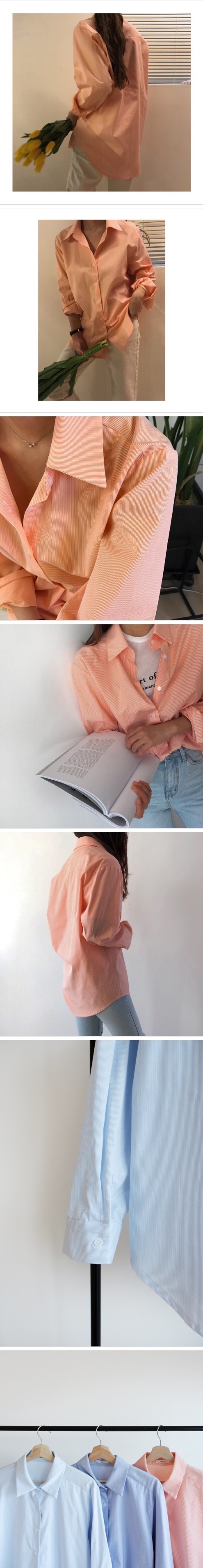 Women`s Loose Filtting Striped Shirts Orange Blue Light Blue