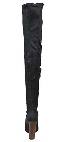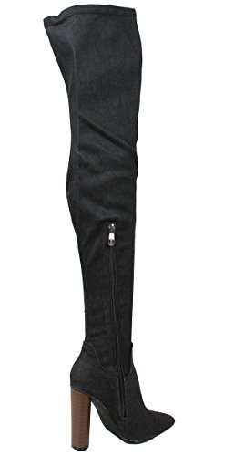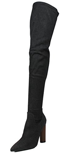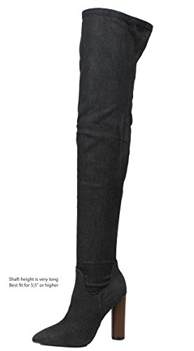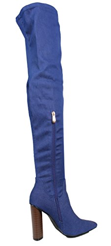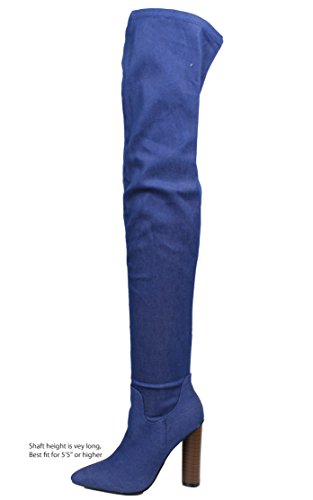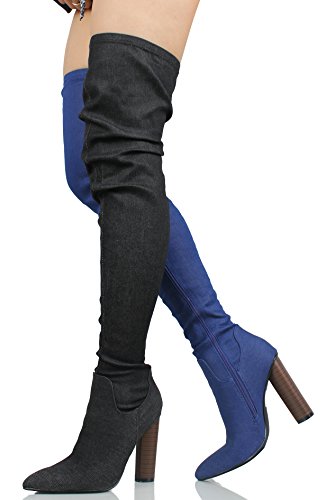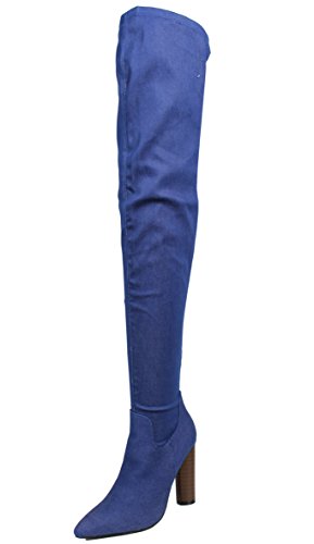 Cape Robbin Women's Pointy Toe Denim Over the Knee Stacked Heel