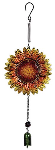 - Sunflower with petals in warm fall colors with amber colored glass center; accented by a marble held in coiled metal and bell hanging below