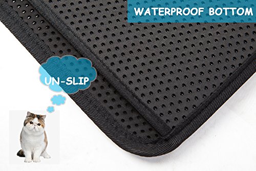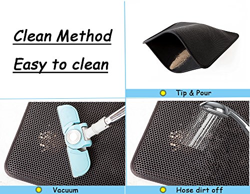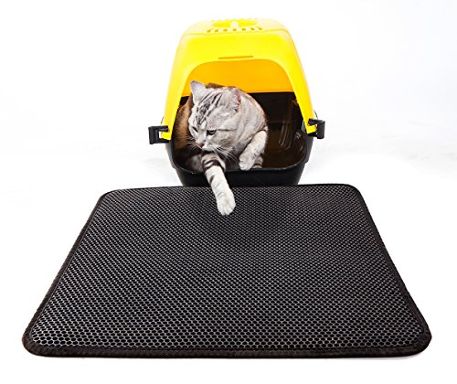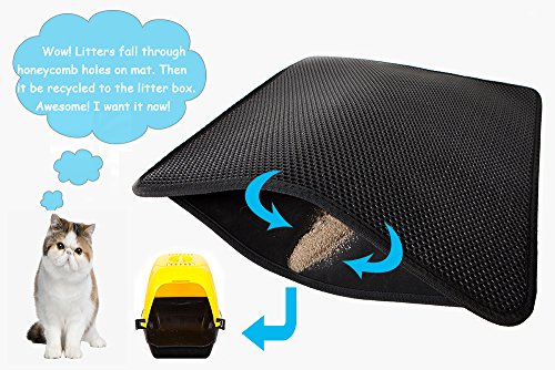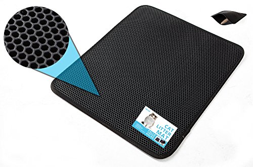 LePet Cat Litter Mat with honeycomb top layer and waterproof base layer. Litter and debris falls through the holes and is collected in the base. Simply pour out to empty, shower rinse (and sun dry) to clean and maintain. Made of durable, non-toxic EVA foam rubber; lightweight at only 2 lbs. Suitable for one or more cats of all ages. 0