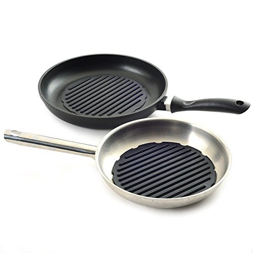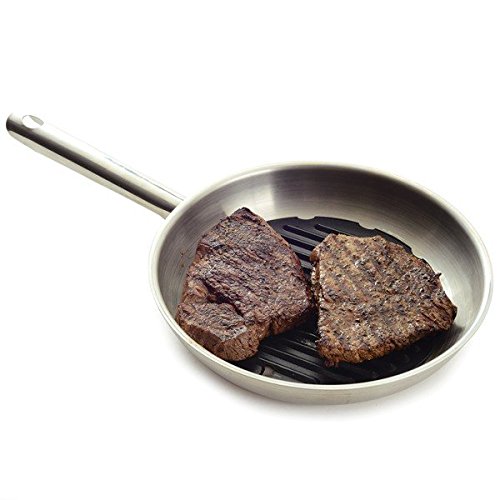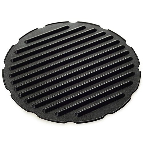 Turn almost any pan into a grill! Fits most pans. Grill steaks, hamburgers, hotdogs, chicken, fish fillet, pork chops, fruits, vegetables on a stovetop. Use for making grilled cheese or fajitas. Retains and distributes heat evenly with no warping or hot spots. Raised ridges drains excess fat from foods. Durable indoor or outdoor use. Ideal for home, cabin and camping. Measures: 7.75" Perfect for easy storage! Cast aluminum is heat resistant to 670˚F/354˚C. Heavy duty finish is nonstick for quick clean up. Instructions: Heat in skillet on or near high for about 6 minutes or until disk is at same heat as pan. A simple test is to flick water on disk if water steams off it should be ready.Feature