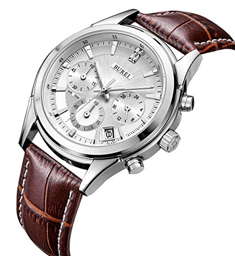 -. Title : BUREI Men's Rose Gold Chronograph Wrist Watches with White Dial Brown Leather Strap