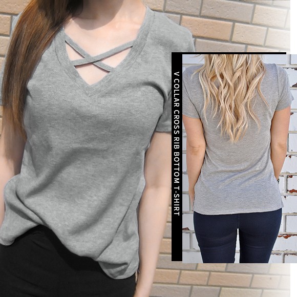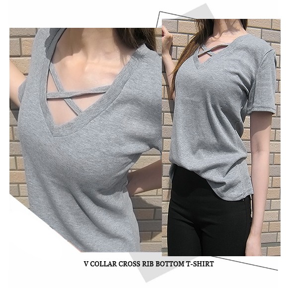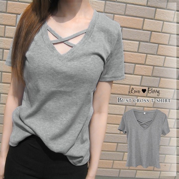 胸元の技ありカットがセクシーなVネックTシャツです♪