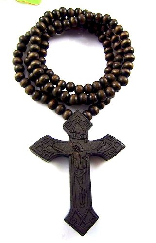 -. Title : Cross Pendant Jesus Wooden Necklace Hip Hop Music Wood Fashion Beads 36" Chain