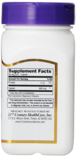 -. Binding : Health and Beauty -. Brand : 21st Century -. Label : 21st Century -. Manufacturer : 21st Century -. ProductGroup : Health and Beauty -. ProductTypeName : HEALTH_PERSONAL_CARE -. Publisher : 21st Century -. Studio : 21st Century -. Title : 21st Century Gelatin 100 Capsules