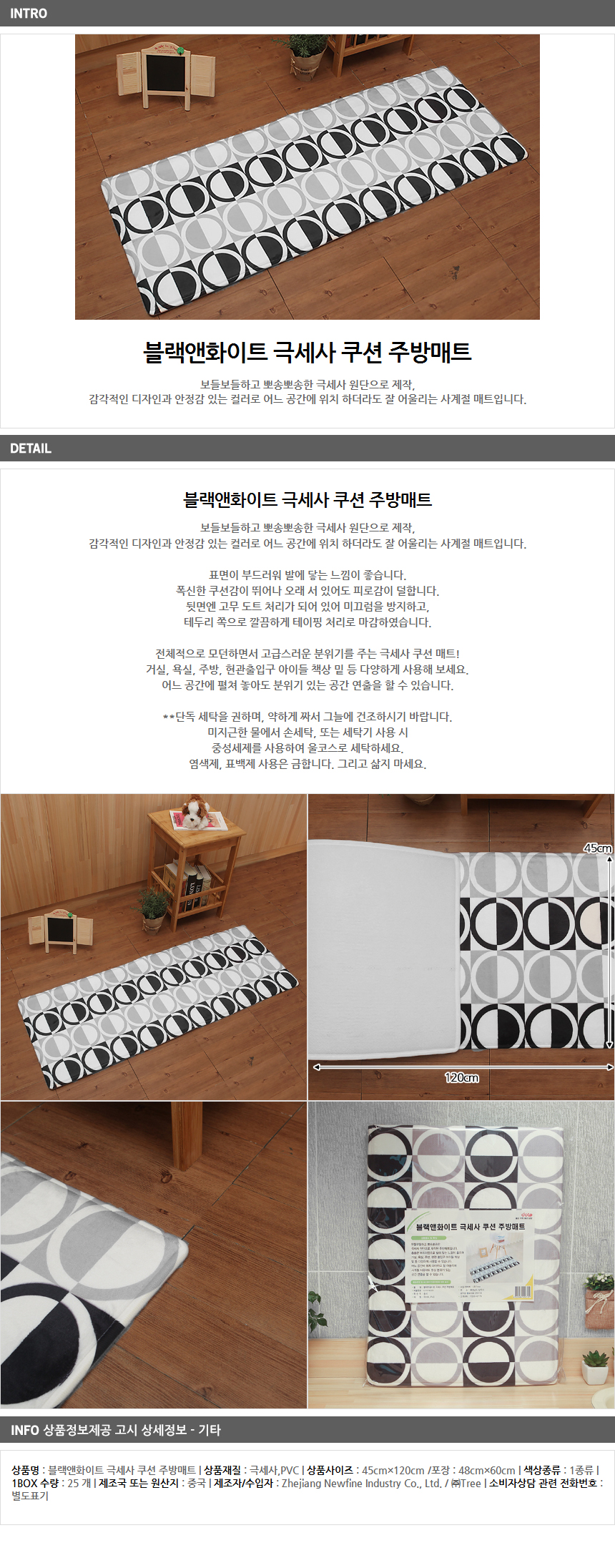 Microfiber cushion kitchen mat Four seasons black and white