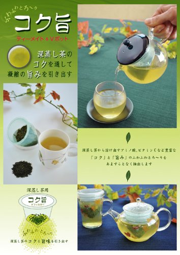 심찌 차의 좋은 맛과《고쿠》는 세포 중에(속에) 꼭 응축 되고 있는다.뜨거운(더운) 물을 쏟아지면 조직이 청해지고, 맛있은 엽고기가 녹아 내는 연구와 지혜.이것이 심찌 제법.심찌 차는 쪄 시간이 긴 모아 둬 차잎의 세포 조직이 깨지기 쉬워져 극미분이 많이 진심 이라고 있는다.이것에 뜨거운(더운) 물을 따르면 엽고기가 풀어라 내밀기,부유하는 아미노산,비타민C등 영양 풍부한「둥실둥실 잡다~#」를 남기는 일 없이 추출 할 수 있는 메쉬를 이용한의가《고쿠》지V필터이다.둥실둥실 잡다~#은,그「《고쿠》」그「좋은 맛」 V형 (이므로)그래서 물수제비 발군,다껍질은 그대로 포 이《》 맛있은 차의 만들어 넣음(담는 그릇·상자 등) 분(쪽,편) V형 (이므로)그래서 뜨거운(더운) 물이 반드시 차잎을 대로,맛있음을 꺼낸 여름은빙을 넣고 시원스럽게 마시고 싶은 시,마시고 싶은 차를