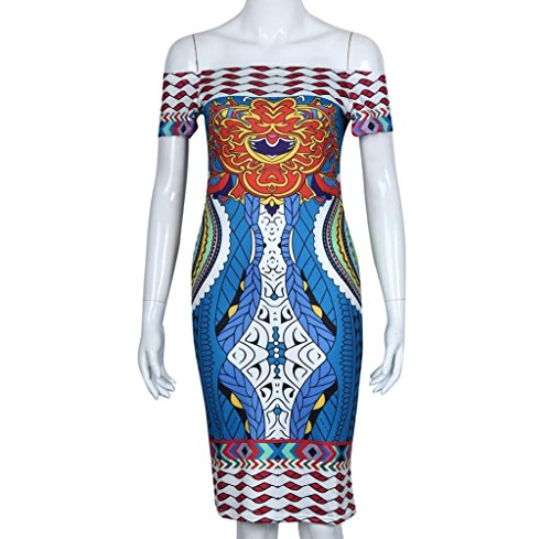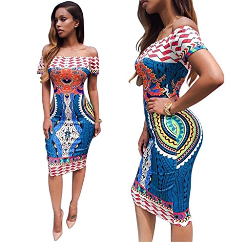 Women Traditional African Print Dashiki Bodycon Sexy Short Sleeve Dress